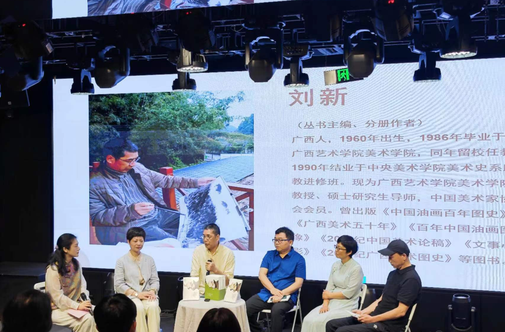 自治区党委宣传部出版管理处副处长刘亚军,广西美术出版社党总支书记、社长白竹林,广西艺术学院美术美术教育学院院长王雪峰,广西美术出版社总编辑杨勇,广西美术出版社副社长黄庆云,广西艺术学院美术学院美术史论系副主任苏阿嫦,广西艺术学院美术学院基础部副主任黄光良,广西艺术学院美术学院综合绘画系副主任王珏,广西艺术学院图书馆副馆长李蓉,广西艺术学院美术教育学院副教授覃春铭,广西艺术学院漓江画派研究中心副研究员盘莉娜,广西艺术学院美术学院版画系副教授梁业健等出席活动。丛书作者团队广西艺术学院美术学院教授刘新,广西师范大学美术学院院长陆丽娟,广西艺术学院美术学院教授闫爱华,广西艺术学院美术学院副教授曾莉,广西社会科学院文化研究所副研究员陆璎齐聚一堂,与现场读者展开深度对话。