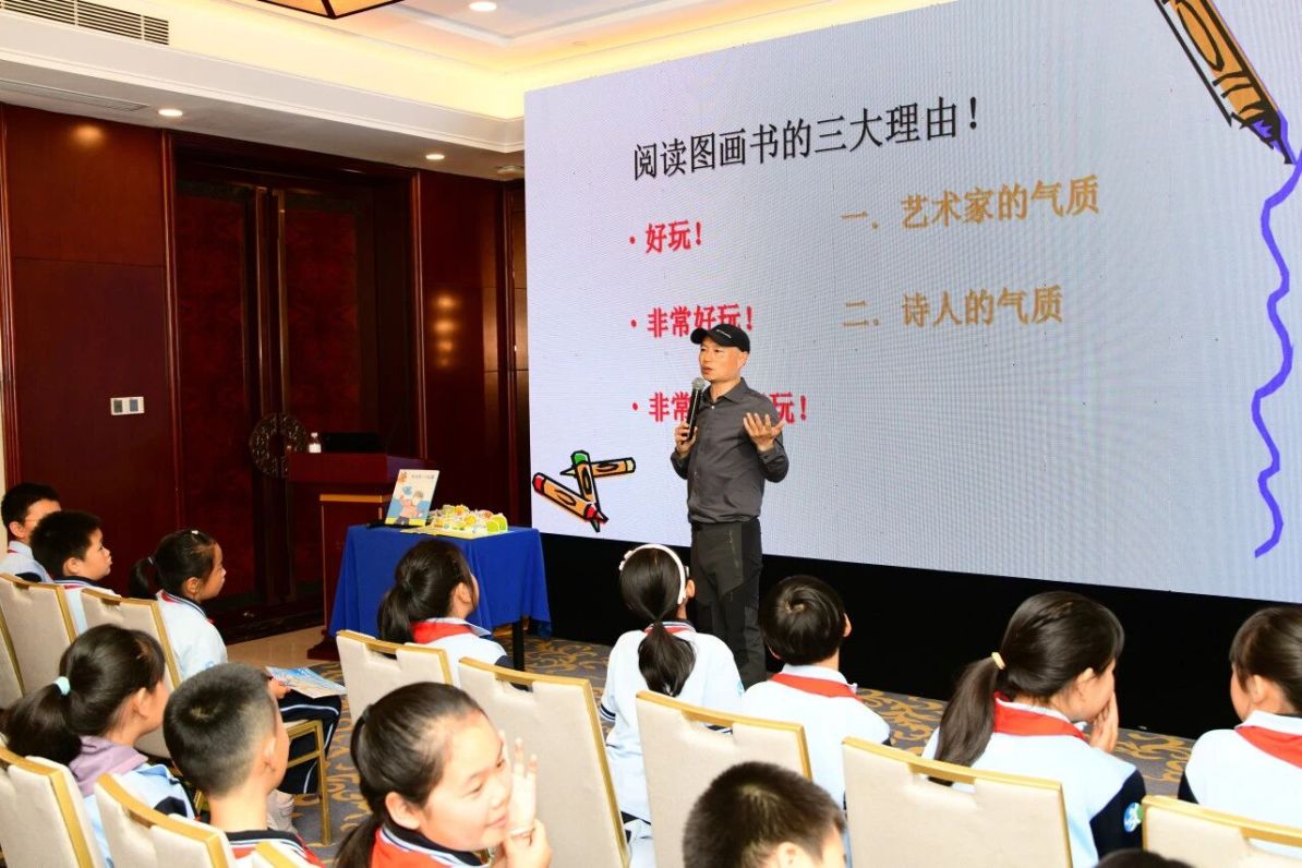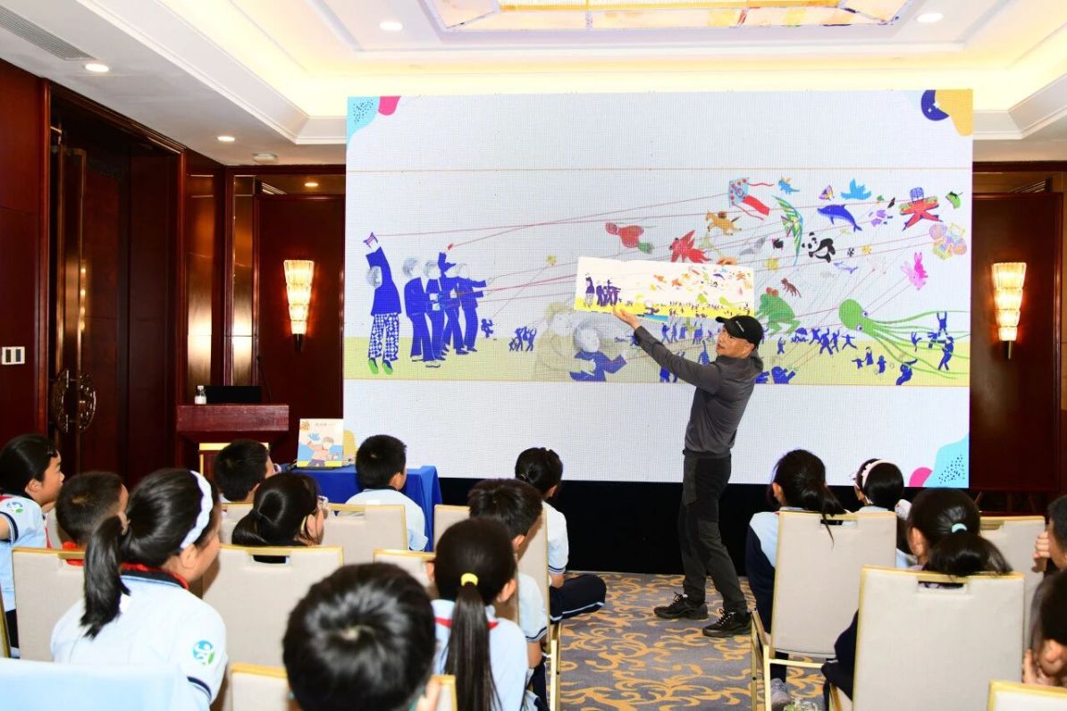 作为深耕童书领域二十余年的阅读推广人,阿甲老师不仅翻译了数百种经典绘本,更荣获“艾瑞·卡尔奖”桥梁奖,成为中国首位获此荣誉的“说书人”。活动现场,他用生动易懂的语言、有趣的互动提问,解读《我就像一只风筝》的故事深意,贴合儿童认知特点,让孩子们在聆听中思考、在互动中成长。