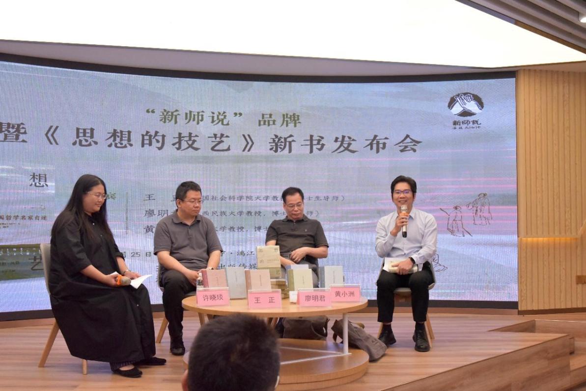 2026年4月25日下午,由广西出版传媒集团主办、广西人民出版社承办的 “‘新师说’品牌升级暨《思想的技艺》新书发布会”在南宁漓江书院广西大学店举办。“新师说”丛书正式升级为独立图书品牌,同时推出了其“名家自述”系列的开篇之作——《思想的技艺:中国哲学名家自述》。