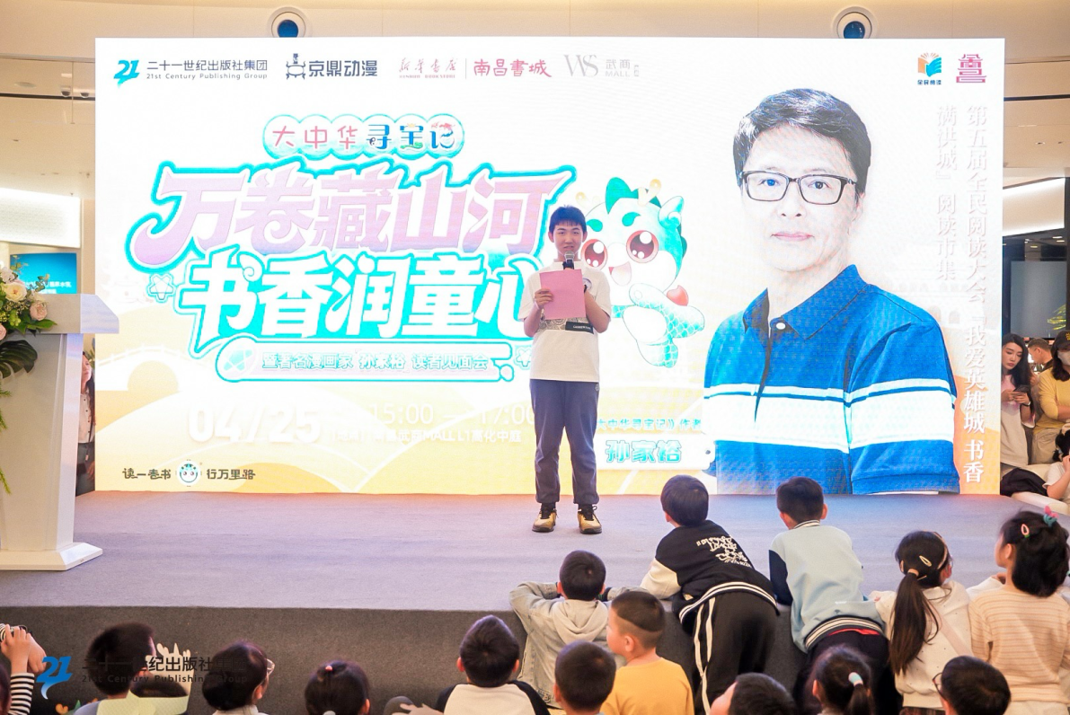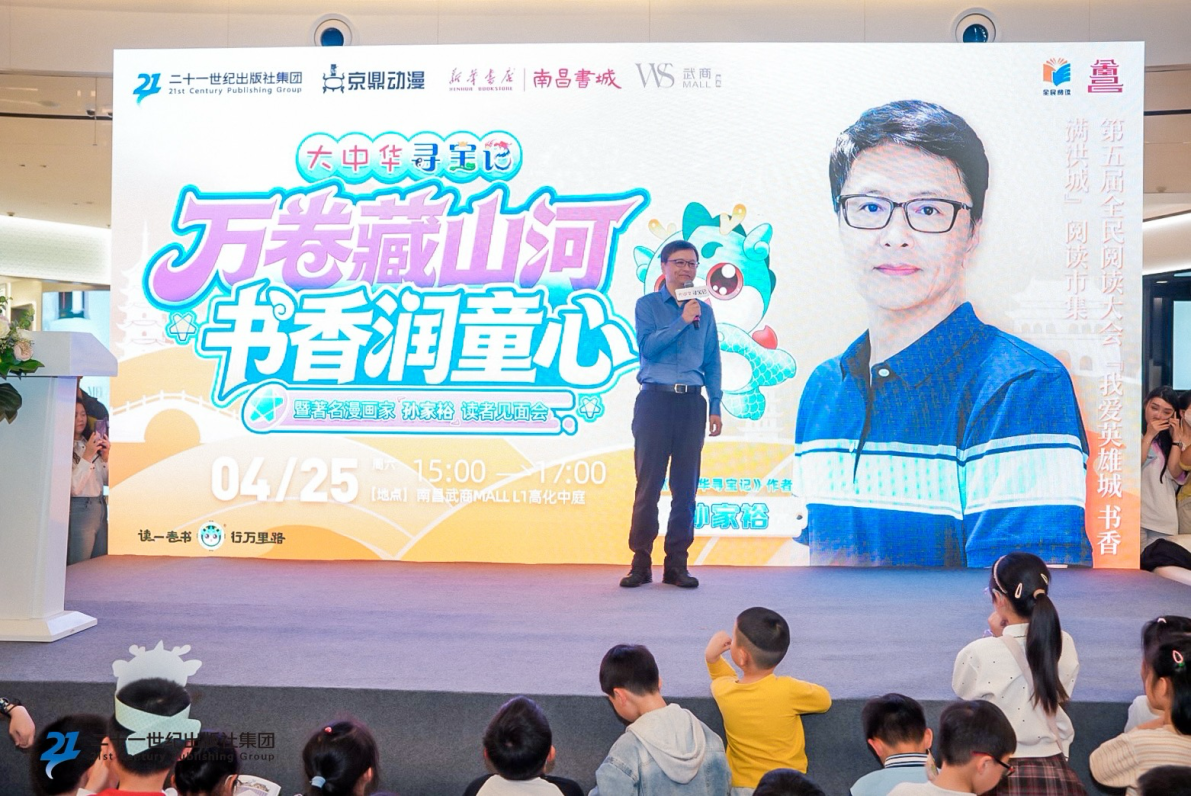 4月25日,值第五届全民阅读大会于南昌举办之际,“万卷藏山河,书香润童心——《大中华寻宝记》‘六个一百’阅读计划启动暨著名漫画家孙家裕读者见面会”在南昌武商MALL隆重举行。本次活动由二十一世纪出版社集团、京鼎动漫与南昌书城联合主办。它不仅是一场作者与读者的欢聚盛典,还标志着国民级 IP“大中华寻宝记”,实现从现象级图书产品到系统化阅读生态建设的跨越发展。