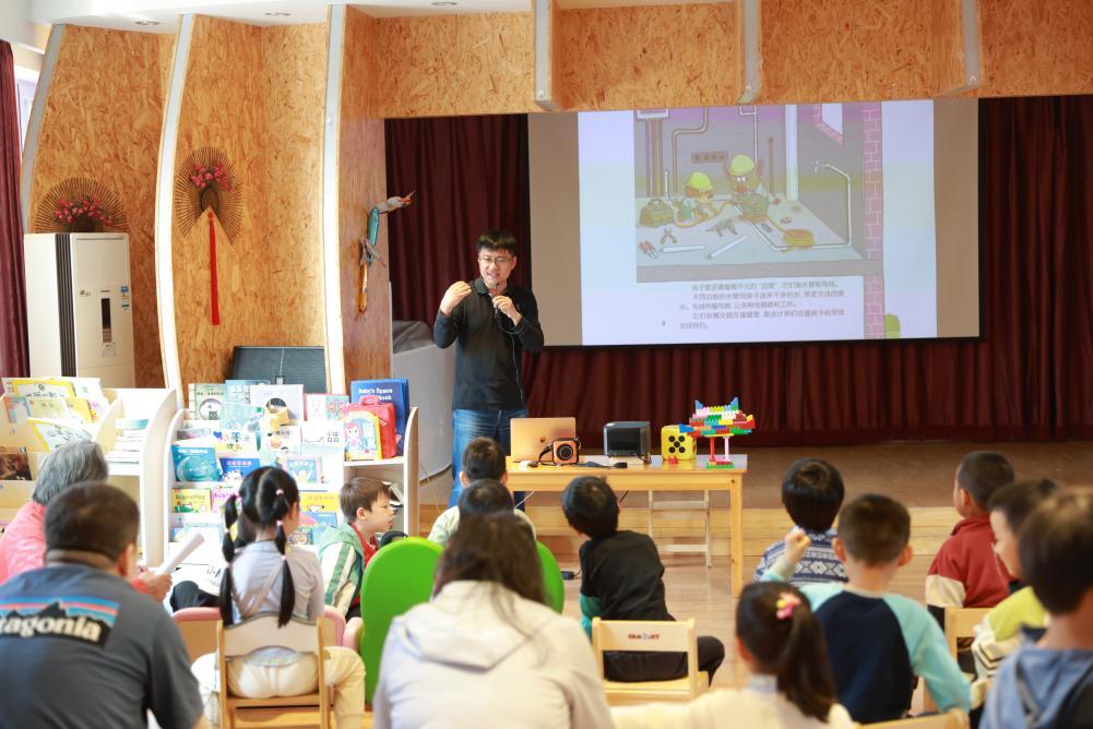 在科普引领层面,推动儿童阅读从“浅层翻阅”走向“深层认知”。中科一幼活动现场,国家一级建筑师和科普作家郭宇力为孩子们揭开建筑的秘密,资深编辑胡浩讲述绘本创作故事;中科三幼邀请具有20余年一线经验的“超级饲养员”杨毅带领孩子们探索城市动物伙伴,科普作家和创意导演邓昕现场呈现AI赋能绘本创作;中科四幼邀请绘本创作团队入园讲解本草文化,让中华传统医药知识变得可亲、可近、可感。当内容创作者真正走到孩子们面前,静态的知识化作可感、可触、可互动的鲜活体验,孩子们的阅读兴趣得到进一步深化。