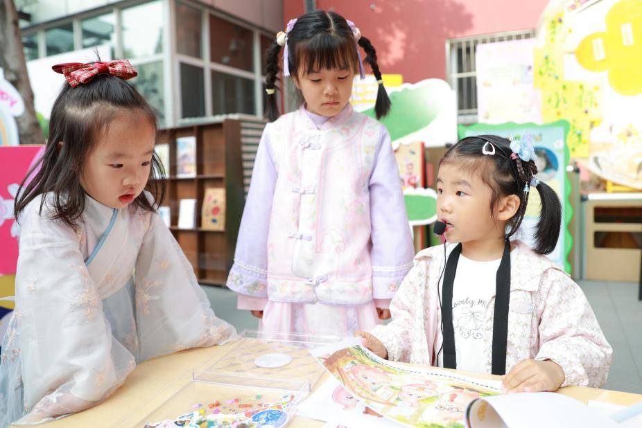 在艺术表达层面,实现儿童多元化、立体化的阅读体验。中科一幼飞马乐队创编《阅读开出花》,唱出对阅读的热爱;中科三幼设置优质绘本推广大使,将深度阅读成果转化为充满童趣的个性化表达;中科太舟坞幼儿园融合鲜活表演、可爱道具与沉浸式舞台,让绘本故事从纸面中“立”起来;中科上庄幼儿园以非遗手作创作传承传统文化,实现传统与现代的交汇。活动融合“听、说、读、演、创、探”等多种形式,将阅读转化为生动的艺术创造,为孩子们提供丰富、深刻的阅读体验。