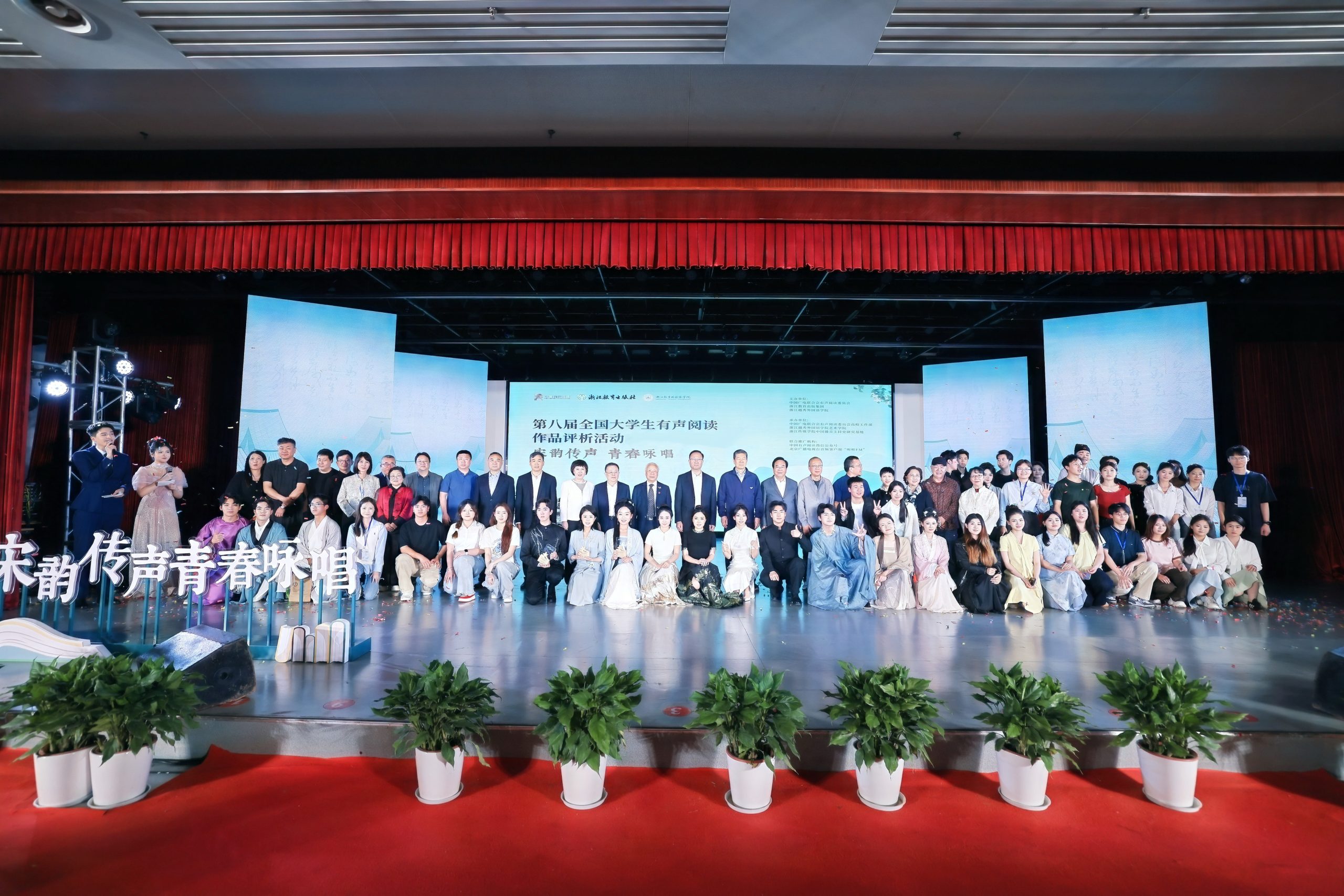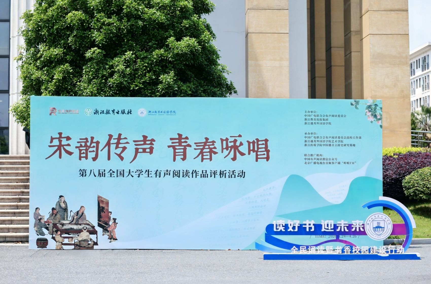2026年4月26日,第八届全国大学生有声阅读作品评析活动暨作品展演在浙江越秀外国语学院镜湖剧院隆重举行。本次活动由中广联合会有声阅读委员会、浙江教育出版集团、浙江越秀外国语学院联合主办。本次活动以《遇见宋词婉约派》《遇见宋词豪放派》为诵读蓝本,共有149所院校参与。
