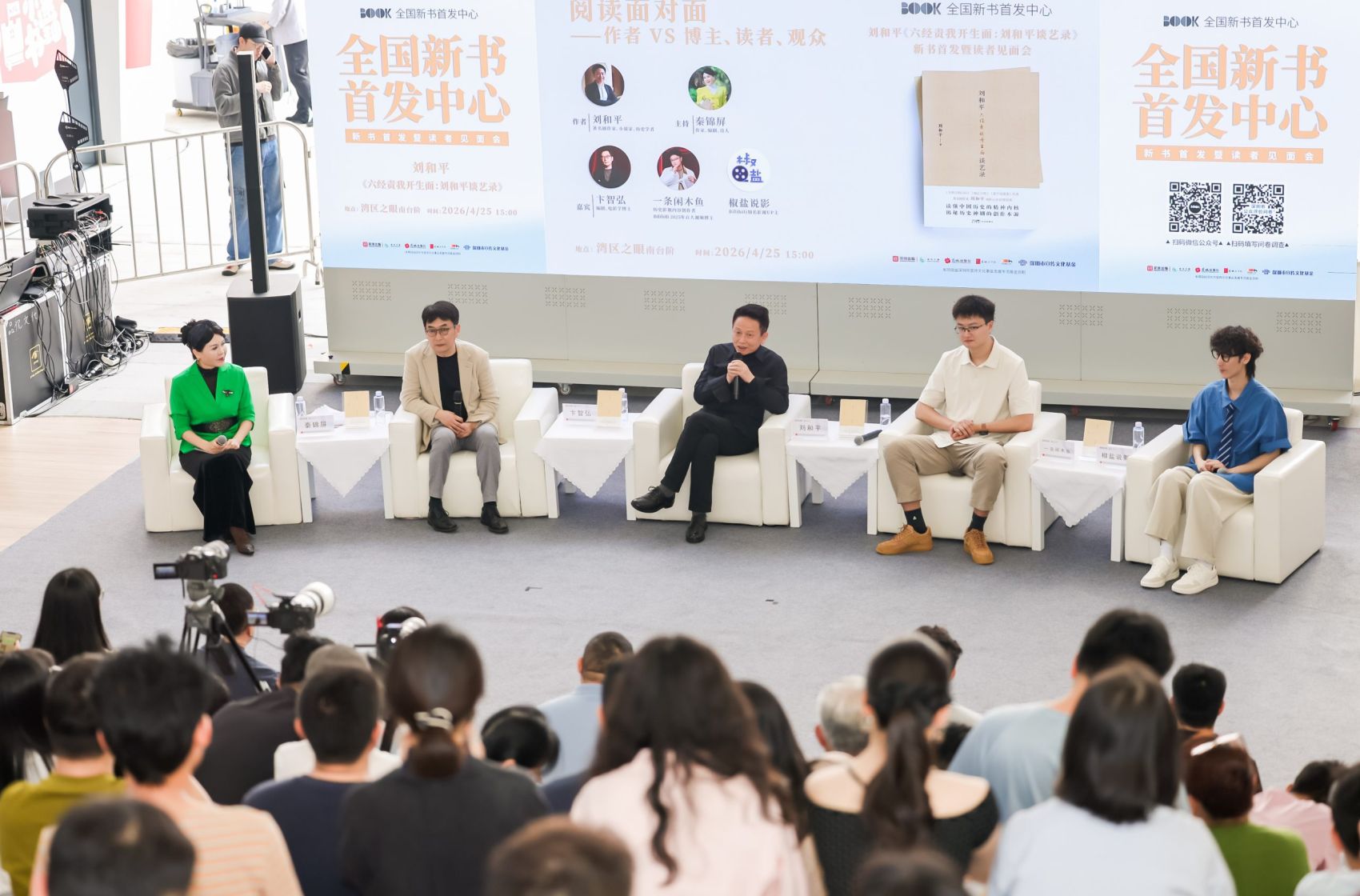 2026年4月25日下午,由花城出版社、全国新书首发中心联合主办的《六经责我开生面:刘和平谈艺录》新书首发暨读者见面会在深圳“湾区之眼”南区大台阶举行。中国著名剧作家、小说家、历史学者刘和平携其新作亮相,与《八千里路云和月》编剧、电影学博士卞智弘,B站百大UP主“一条闲木鱼”、知名人气影视UP主“椒盐说影”,以及特邀资深影迷展开深度对话。活动由作家、编剧、诗人秦锦屏主持,来自全国各地的百余名读者现场参与,气氛热烈,掌声频起。