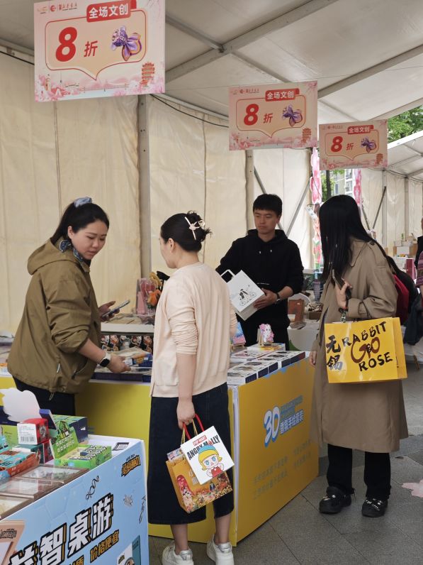 四月十七日,萤照书局亮相武汉东西湖临空港文化中心,主办跳进书市圈·书展一下-春日慢游专场,以文会友,与武汉市民共赴一场春日书香之约。市集现场,我们展出了优质图书、文创产品、演艺活动、手作工坊、生活美学多项内容,吸引了众多消费者驻足翻阅、交流分享。热闹的市集氛围中,文化成为了连接人与人之间最温暖的纽带。